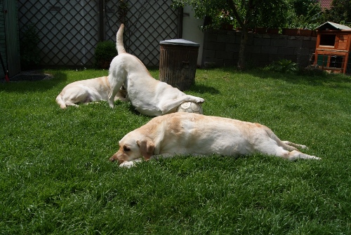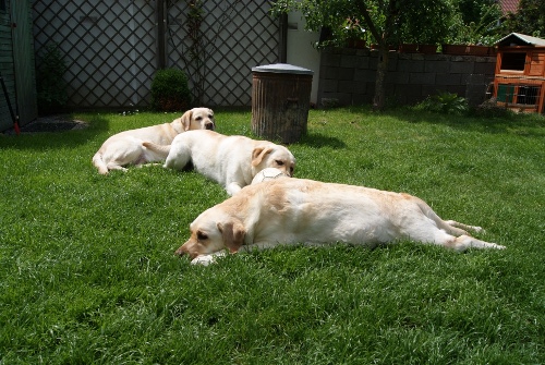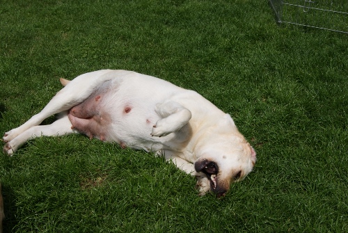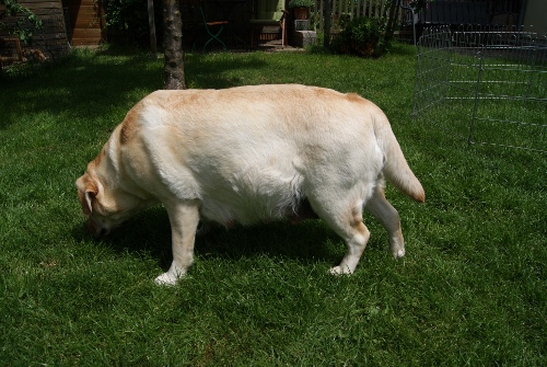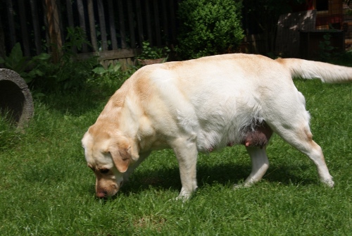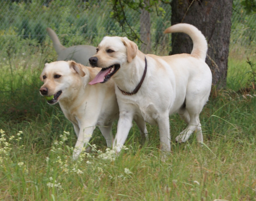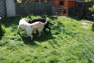 Alkmene "Pommes" wurde von Wallace gedeckt.Wenn alles klappt, erwarten wir um den 29.Mai gelbe und schwarze Welpen. |
